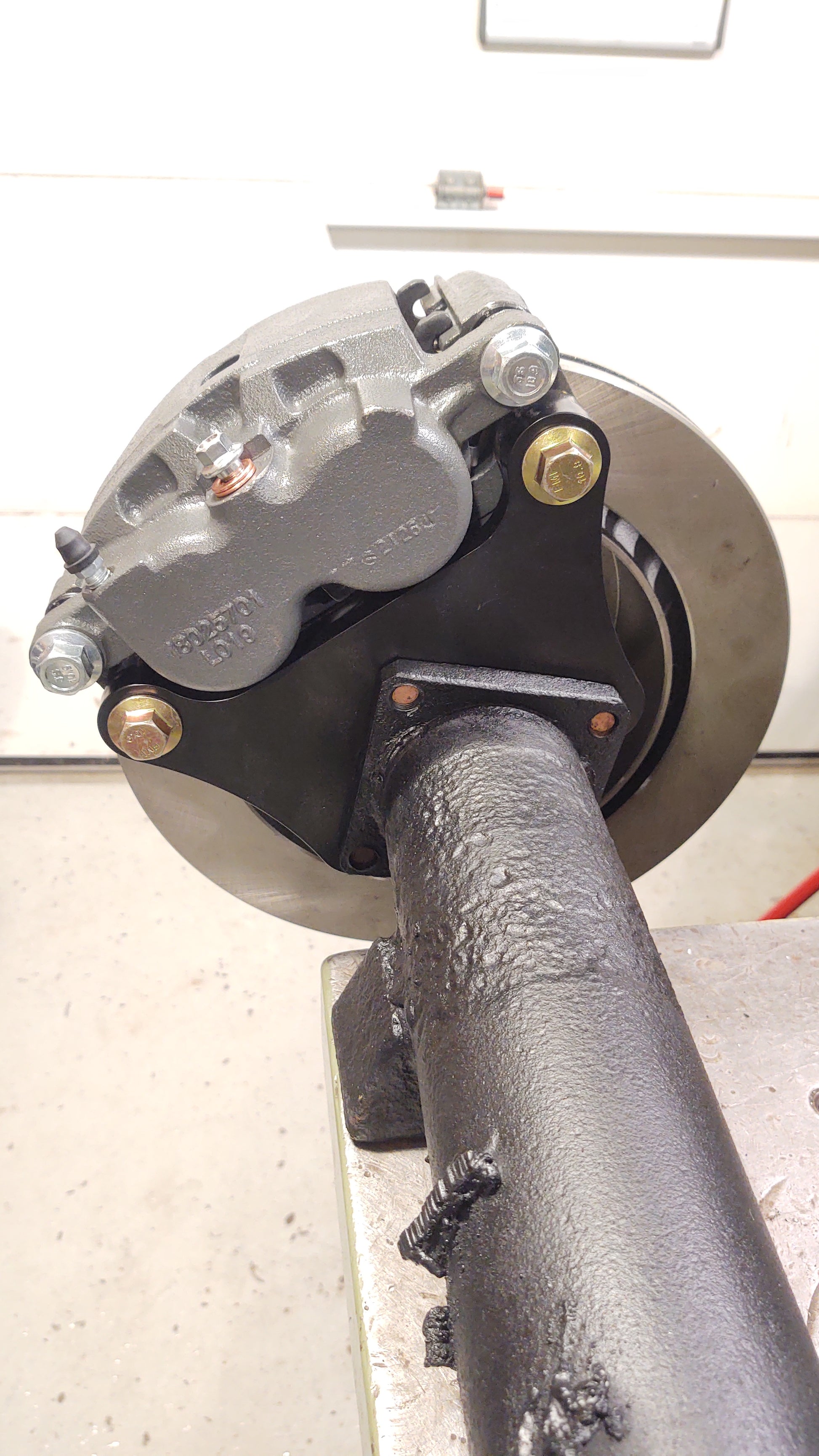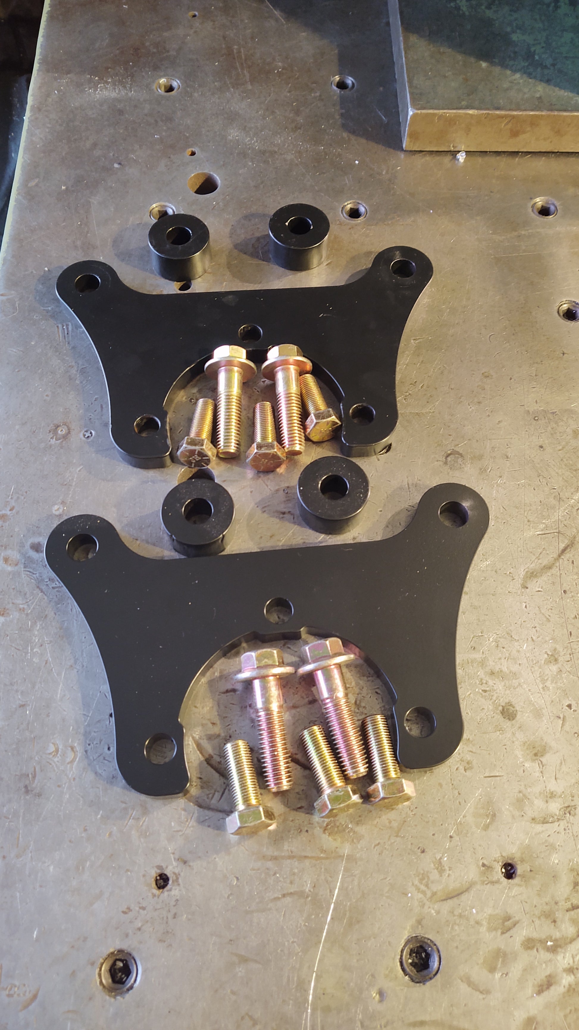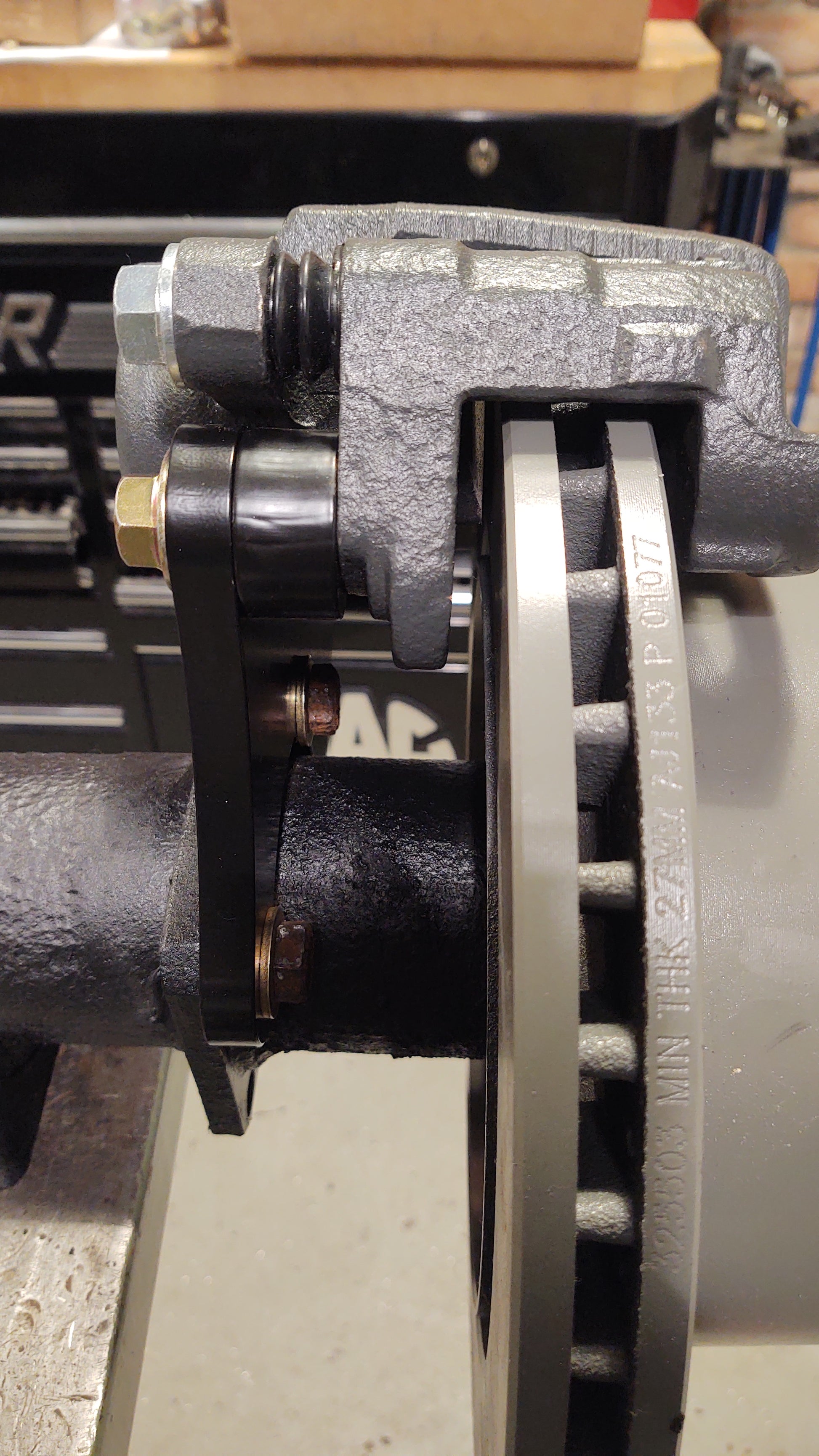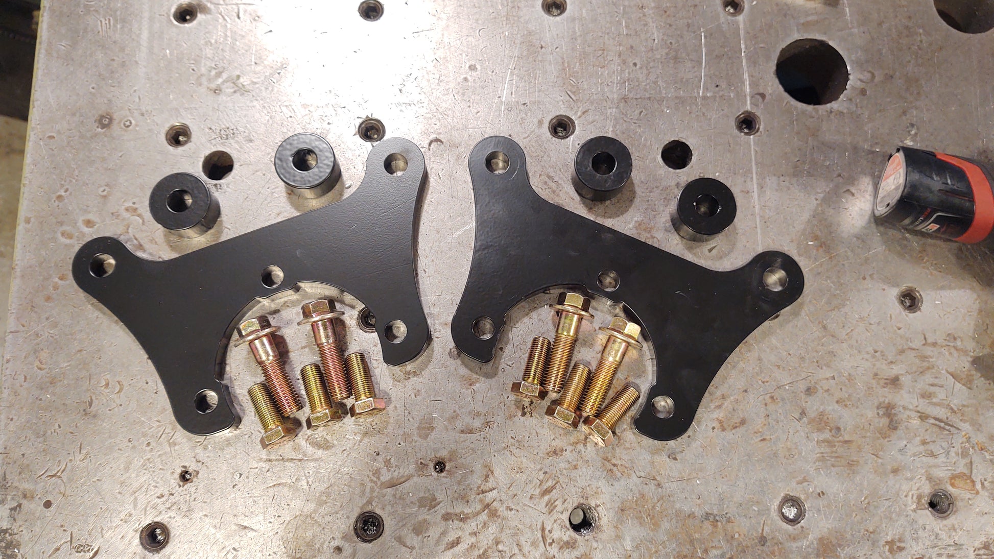 Disc brake caliper mount kit for 73-88 Gm 14 Bolt dually rear axle to use Newer style Gm truck calipers. These are comprised of 2 parts, the main mounting bracket and a spacer plate. Brackets are laser cut from 1/2" steel and spacers are 3/4' steel. They require no cutting, welding or drilling for install. This listing will include the brackets and bolts only.